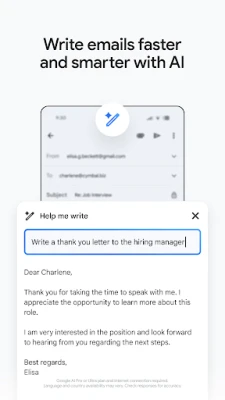 เพิ่มความคล่องตัวในการค้นหาอีเมลที่ต้องการด้วยผลลัพธ์ทันใจ การคาดคะเนขณะพิมพ์ และคำแนะนำการสะกด ช่วยให้คุณเข้าถึงข้อมูลได้อย่างรวดเร็ว จัดการกล่องจดหมายของคุณให้เป็นระเบียบด้วยการติดป้ายกำกับ ติดดาว ลบ หรือรายงานจดหมายขยะ และยังสามารถเคลียร์อีเมลที่ไม่ต้องการได้อย่างรวดเร็วเพียงแค่ปัด การรองรับหลายบัญชีทำให้การสลับใช้งานเป็นเรื่องง่าย ไม่ว่าจะสำหรับเรื่องงานหรือส่วนตัว พร้อมด้วยการแนบและแชร์ไฟล์ต่างๆ ได้อย่างราบรื่น และสำหรับผู้ใช้งาน Wear OS คุณสามารถดูภาพรวมอีเมลที่สำคัญได้โดยตรงจากนาฬิกาข้อมือของคุณ ด้วยข้อมูลแทรกและไทล์ Gmail ทั้งหมดนี้เพื่อประสบการณ์การใช้งานที่ไร้ขีดจำกัดและตอบโจทย์ทุกไลฟ์สไตล์