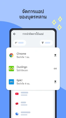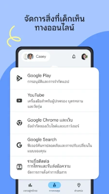 Family Link ให้คุณเป็นผู้กำหนดสมดุลเวลาหน้าจอได้อย่างง่ายดาย ตั้งแต่การจำกัดเวลาใช้งานต่อวัน กำหนดช่วงเวลาแห่งการเรียนรู้และการพักผ่อนที่เหมาะสมกับลูกน้อย หรือแม้กระทั่งควบคุมการใช้งานแต่ละแอปพลิเคชัน ไม่ว่าจะเป็นการจำกัดเวลาเฉพาะแอป บล็อกแอปที่ไม่ต้องการ หรืออนุญาตให้แอปเพื่อการศึกษาหรือแอปที่จำเป็นใช้งานได้อย่างไม่จำกัด นอกจากนี้ Family Link ยังเสริมเกราะป้องกันด้านเนื้อหา คุณสามารถจัดการการเข้าถึงเว็บไซต์และเนื้อหาบนบริการต่างๆ ของ Google เช่น Chrome, Google Play, YouTube และ Google Search ได้อย่างแม่นยำ ปิดกั้นสิ่งที่ไม่เหมาะสม และอนุมัติการติดตั้งแอปใหม่ เพื่อให้บุตรหลานได้สำรวจโลกออนไลน์ภายใต้การดูแลที่เหมาะสม